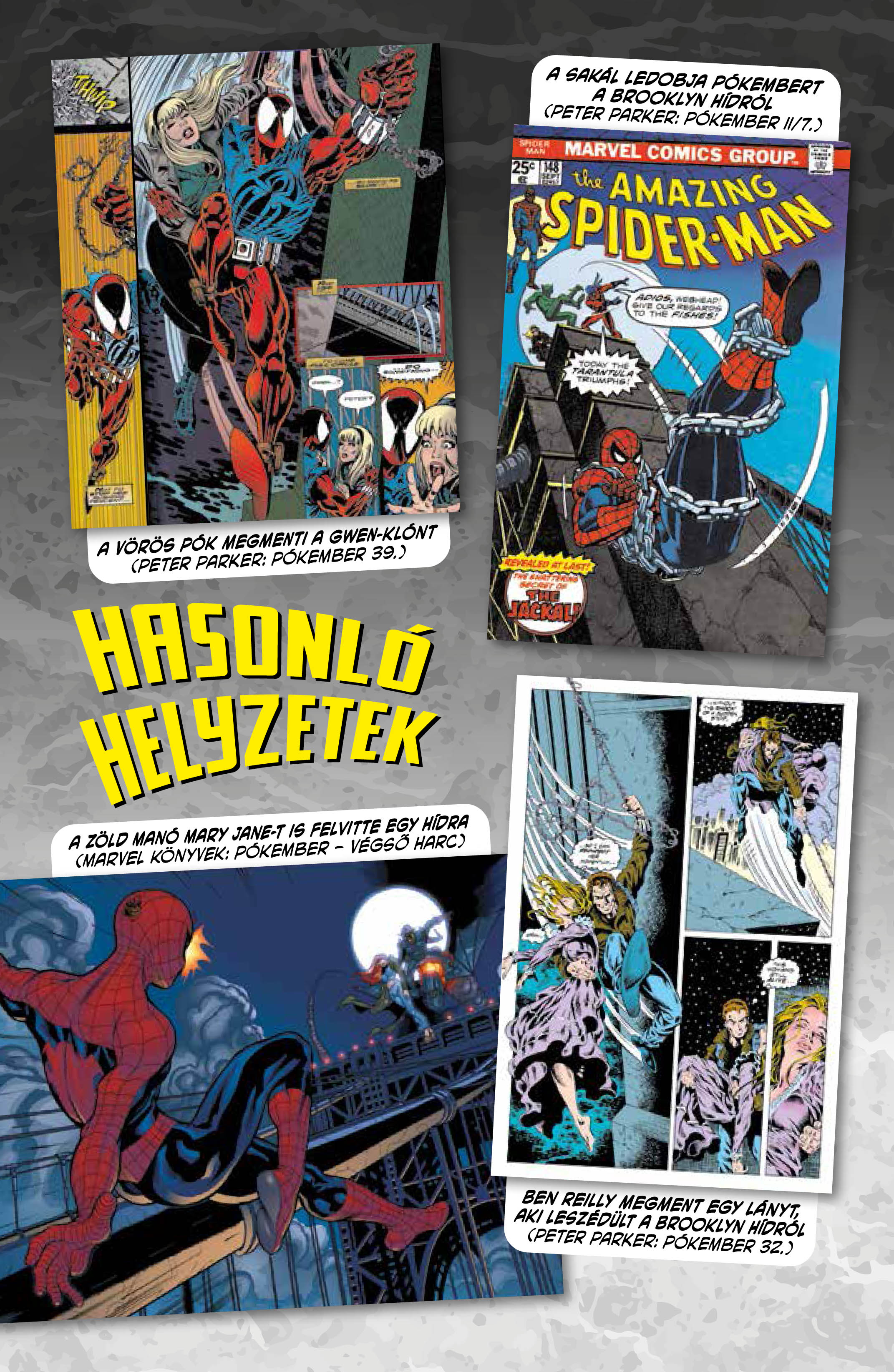 Már a boltban és a webshopban van a Pókember: Gwen Stacy halála című legújabb kemény fedeles kötetünk. A 160 oldalas, nagyalakú képregény zömében újrakiadás: tartalmazza az Amazing Spider-Man 121-122-t, részleteket a 123-ból, rövid sztorikat a 365-ből, a Webspinners 1-ből, a Spider-Man 26-ból és a teljes What If 24-et. Új történetek benne a What If Dark: Spider-Gwen és részletek a Halál csak a kezdet című sztoriból, amivel teljes lesz a kép. A kiadást tovább színesítik dokumentációk és más alkotók elképzelései erről a meghatározó eseményről Pókember életében.